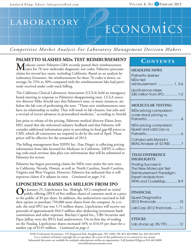Palmetto Leans Toward Median Pricing for MDx Tests