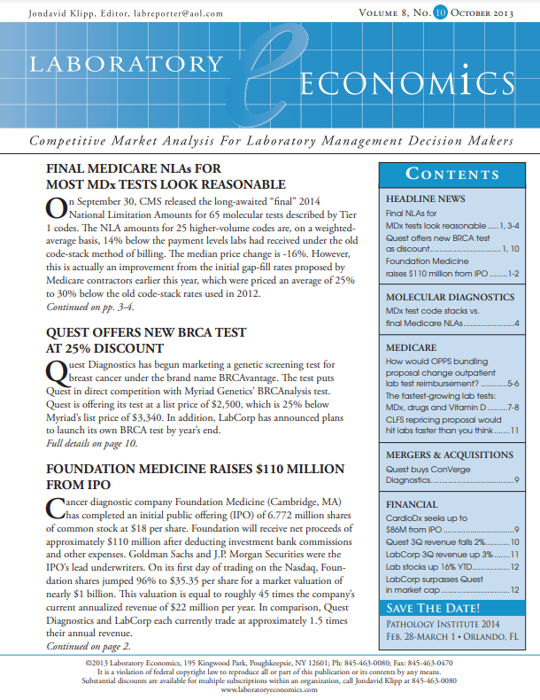 CMS Move Toward “Packaged Payments” Means Lower Reimbursement for Lab Tests