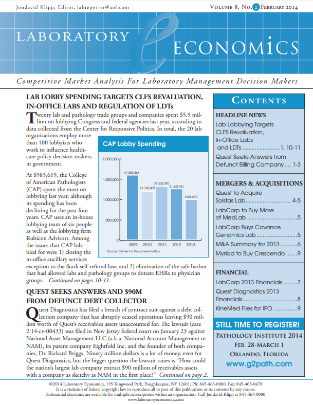 Lab Lobby Spending Targets CLFS Revaluation, In-Office Labs and Regulation of LDTs