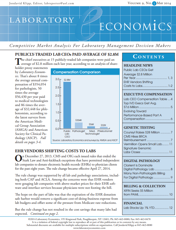 Publicly-Traded Lab CEOs Paid Average of $2.8 Million