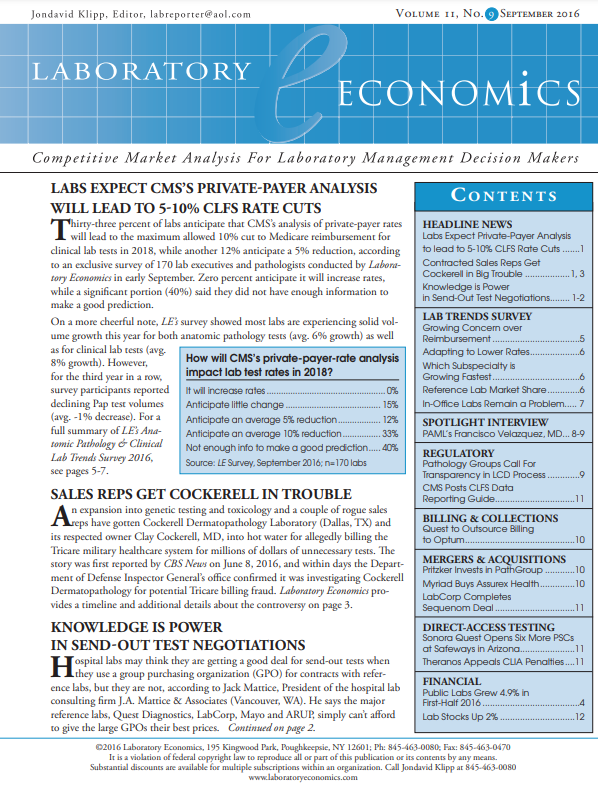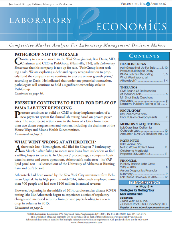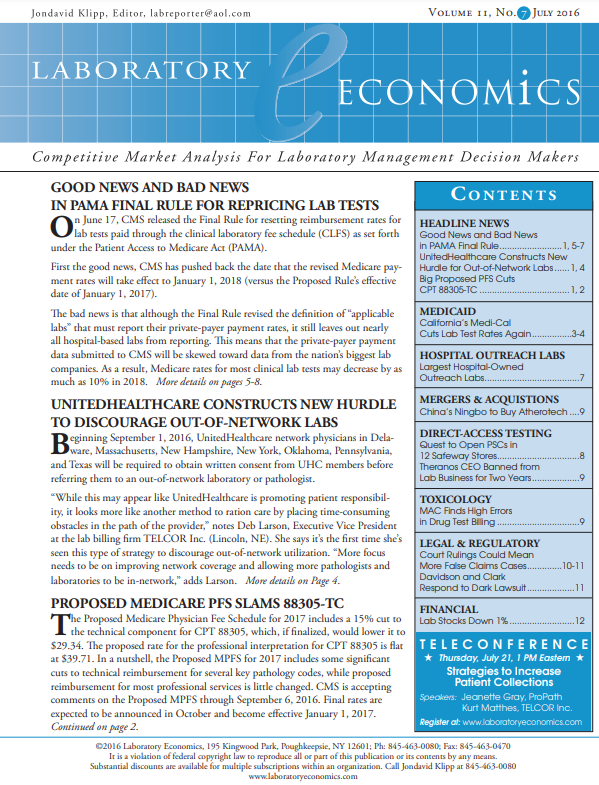 Good News and Bad News In PAMA Final Rule For Repricing Lab Tests