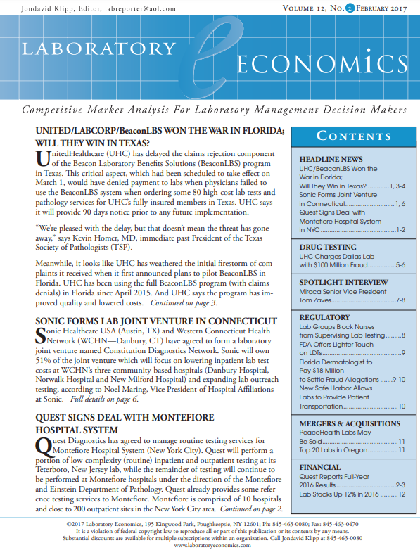 United/Labcorp/BeaconLBS Won the War in Florida, Will They Win in Texas?