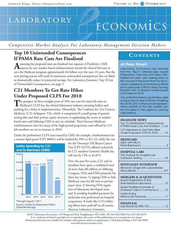 Top 10 Unintended Consequences If PAMA Rate Cuts Are Finalized