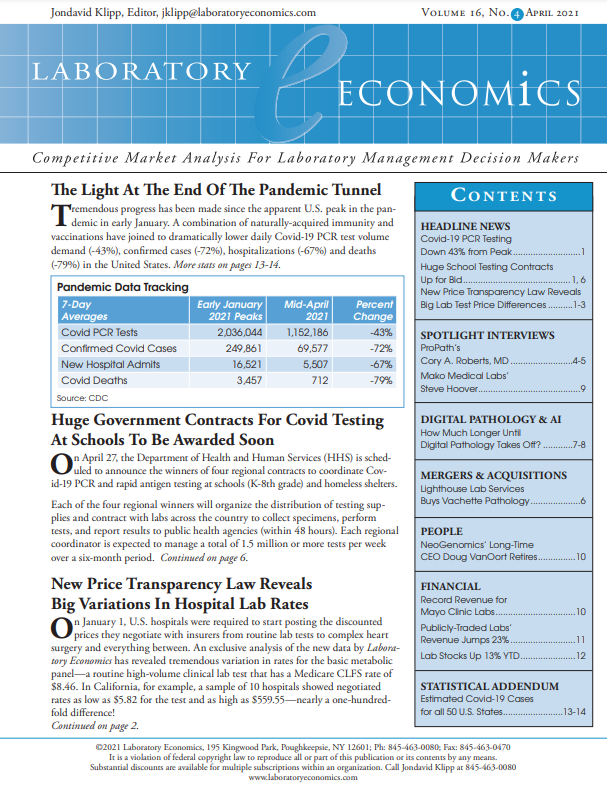 Covid-19 PCR Test Volumes Declining Rapidly