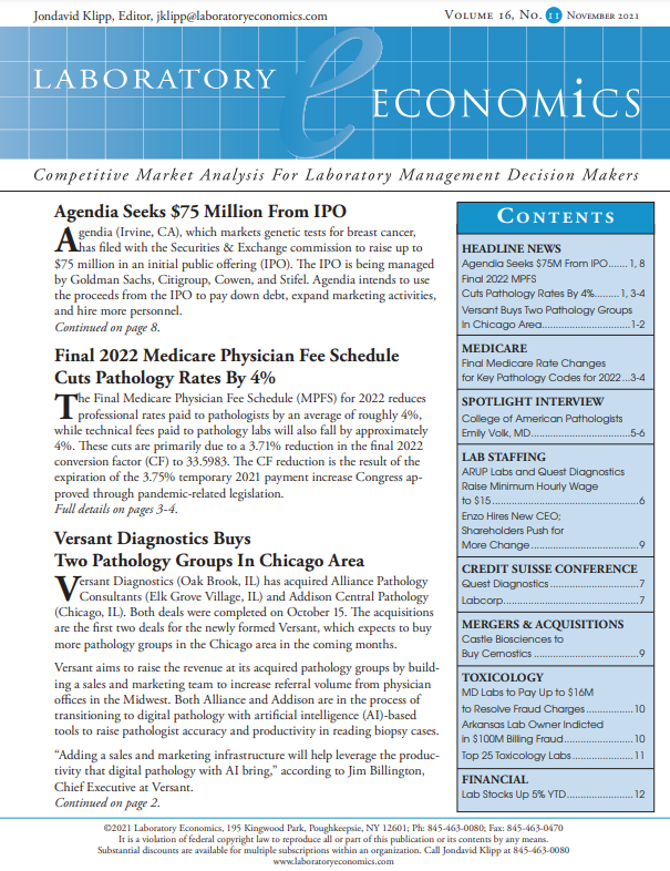 Final 2022 Medicare Physician Fee Schedule Cuts Pathology Rates By 4%