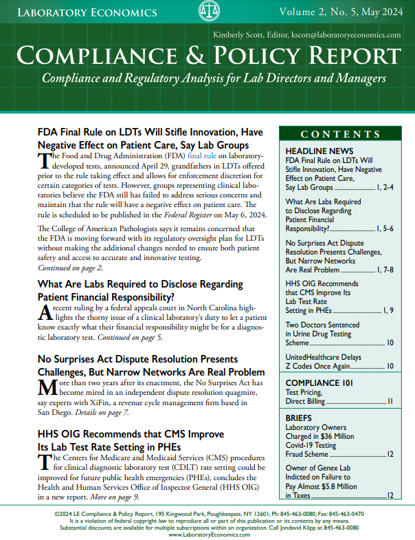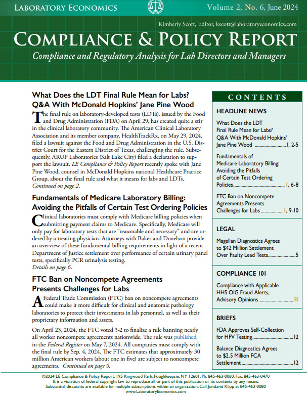 Fundamentals of Medicare Laboratory Billing: Avoiding the Pitfalls of Certain Test Ordering Policies
