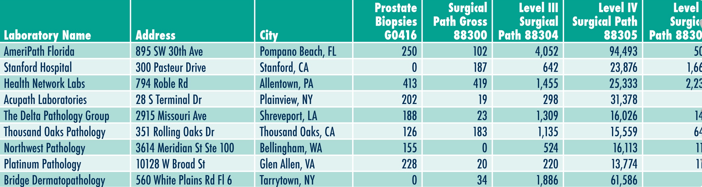 - Specific Annual Medicare Surgical Pathology Volume by CPT Code for all Independent Labs and Pathologists (2023)
